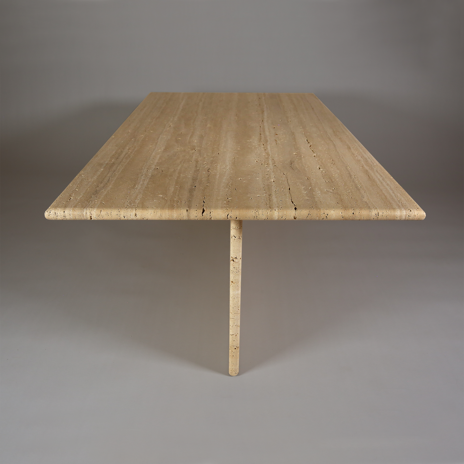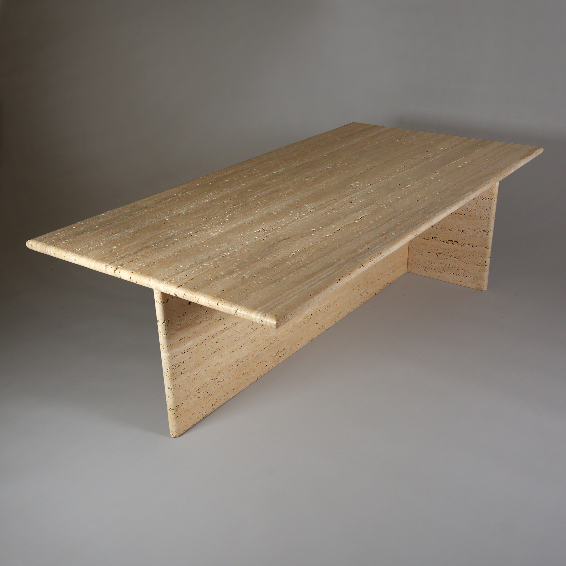 Hand-sculpted in San Antonio from a solid piece of travertine sourced from Puebla, Mexico, this coffee table is substantial, refined, and minimalistic. Its balanced design allows the organic beauty of the travertine to take center stage.